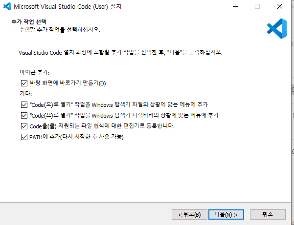 실행 하고 난후엔 필요한 설치 옵션만 확인하면 된다.